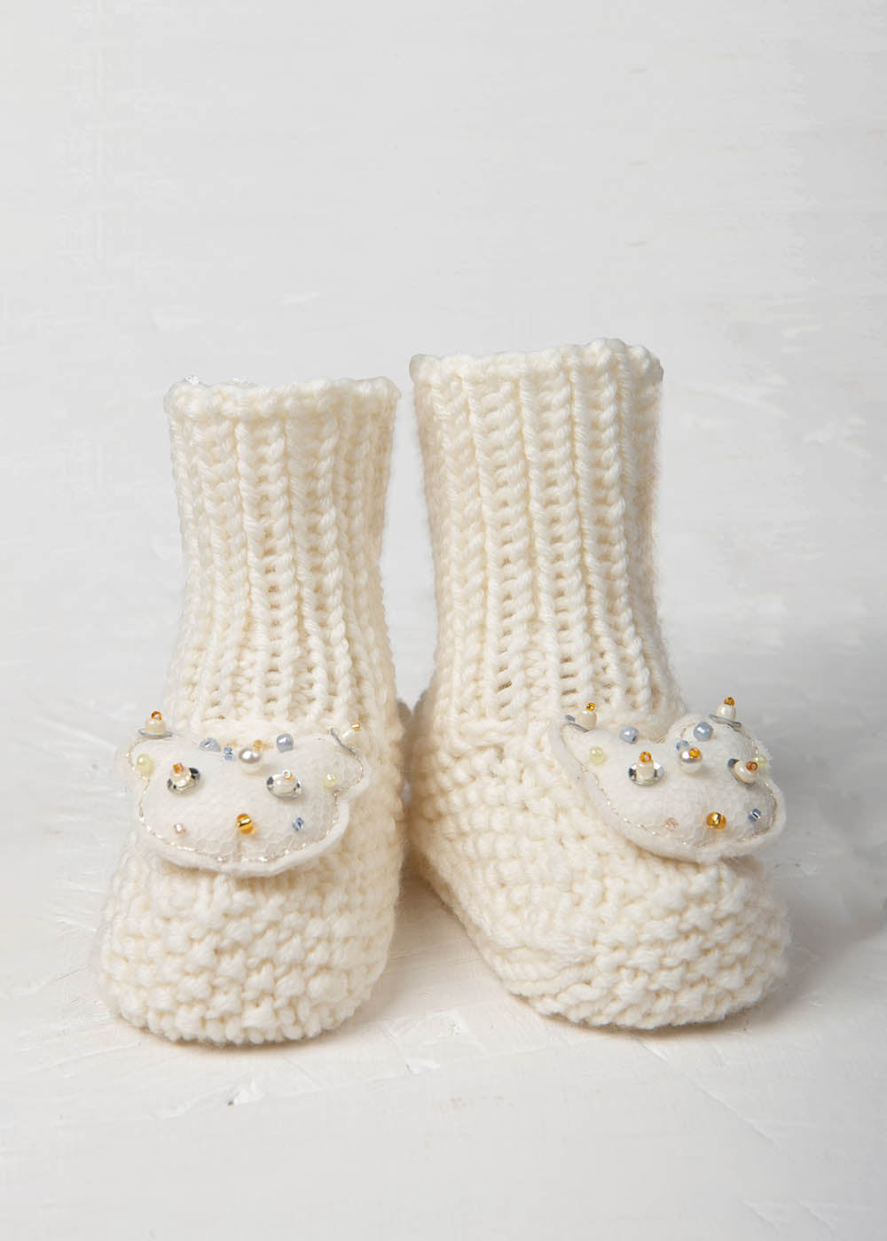 Merino wool hand-knitted booties-comfortable footwear for the smallest feet. When your baby is so tiny and fragile, you want to provide exceptional comfort for their first experience in this world. These booties are warm but merino wool does not allow the feet to overheat. It is stylish gift for various occasions: genders reveal party, a baby shower or the first visit to a grown family. Merino wool booties come in a playful box, just order the product and you can go straight to great the baby.